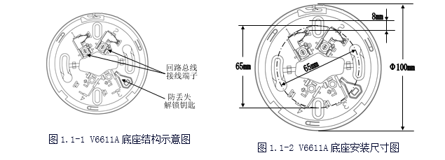 V6611A探測(cè)器底座結(jié)構(gòu)簡單、安裝方便、結(jié)構(gòu)件配合牢固;具有探測(cè)器防丟失結(jié)構(gòu)設(shè)計(jì),每只底座均備有專用的解鎖鑰匙。底座備有長圓形安裝定位孔,可適應(yīng)于86H50型標(biāo)準(zhǔn)預(yù)埋盒及其它型號(hào)的預(yù)埋盒。